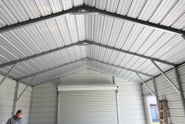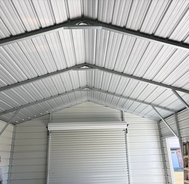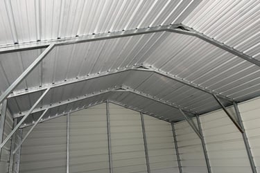 The unfinished metal ceiling made the space feel industrial and incomplete.