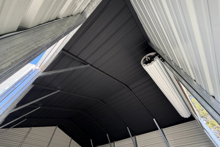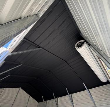 We applied a smooth, even black finish to create a clean, modern look that adds depth and character to the building. The dark ceiling enhances lighting contrast and gives the space a bold, professional apperance.